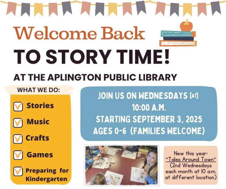 Story Time-aged kids are welcome to join us at our general Summer Reading Program events this year! Check out the below schedule for Aplington-based Story Time events: